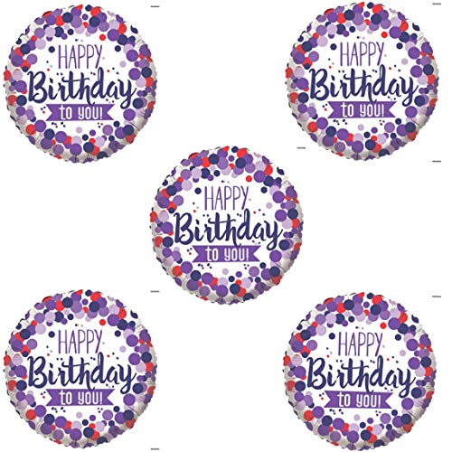 Fancy Shape foil Balloons (Pack of 5 Round HBD Purple)