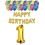 Masti Zone Gold Number One(1) 16" Foil Balloon With Happy Birthday Foil and 25 Printed Balloons For Kids Birthday and Theme party Decoration (1 Number Foil Balloon)