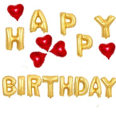 Evisha Golden Happy Birthday 13pcs Foil Balloons and 5 Pcs Red Heart Foil Balloons| Gift for Valentine| Valentine Gift | Valentines Day Gift |Valentines Day Decoration Items| Party Decoration Items