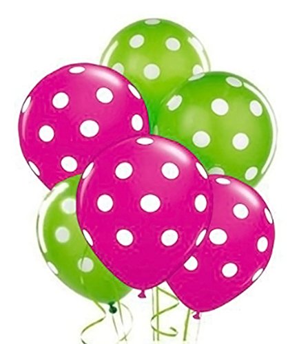 Evisha Green and Pink Polka dot Big Size 12",Balloons for Theme Party, Birthday Party, Party Decoration - Pack of 25