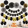 Color:Black Brthday Decoration Cocodeko Happy Brthday Banner Tissue Paper Pom Poms Hanging Paper Fan Set and 20 pcs Balloons for All Brthday Party Decorations Specification: Happy Brthday Banner Quantity:13pcs. Size: 5.9 x 4.7inch. Color: Black and Gold. Material: paper cards. Hanging paper fans: Diameter and quantity. 2 pcs 7.5inch paper fans. 2 pcs 11.6inch paper fans. 2 pcs 16inch paper fans. Color: Black and White. Latex Balloons Quantity: 20 pcs. Diameter: 10inch. Material: Latex. Color: Black and Gold. Paper Pom Poms Size and quantity: 2pcs 10inch Black paper pompoms. 2pcs 10inch Gold paper pompoms. Material: Paper. Easy to DIY and use. Instruction How to DIY the paper pom poms. Step 1 Unfold the tissue paper to the outside with the edges. The strips of tissue paper are joined together in the finished paper flower. Step 2 Carefully pull the layers of tissue paper apart one by one. Step 3 When all the strips have been pulled apart make a more round shape with your hand gently. Step 4 Now hang the paper flower anywhere you want. Package includes 13 x Flags flag banners. 6 x Paper fans. 4 x Paper pompoms. 20 x Balloons
