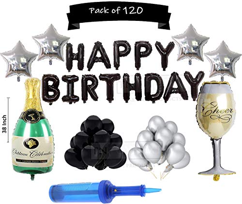 ¢ Happy Brthday Decoration Box for Home / Combo of Foil Balloon(16 Inch) with Champagne Bottle and Glass Foil Balloon Set for Room Decoration Party Celebration - Pack of 120 (Black)