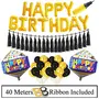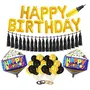 Color:GoldenHappy Brthday Theme Party Box Contain All These 5 Items. 1) Golden Happy Brthday Letter Foil Balloon 2) 100 Metallic Balloons (50 x Dark Golden + 50 Black). 3) 2 x Happy Brthday Printed Foil Balloon 4) Balloon Pump. 5) 1 x Black Golden And Cream Colour Tassels
