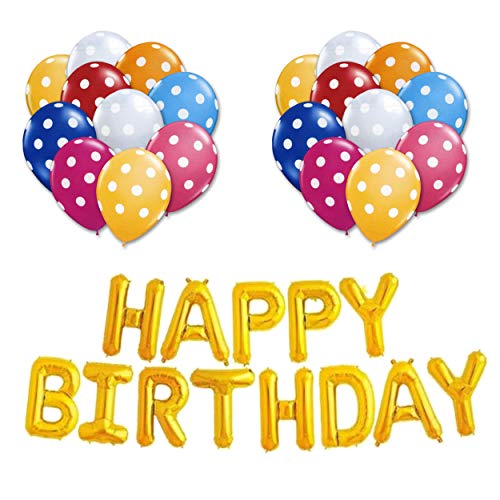 Happy Brthday Foil Letters Balloon Banner with 25 Multi Polka Dot Latex Balloon for Brthday Party