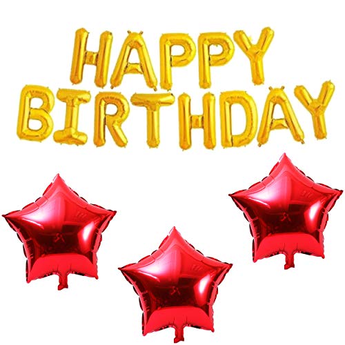 Happy Brthday Foil Letters Balloon Banner with 3 Red Star Foil Balloon for Brthday Party