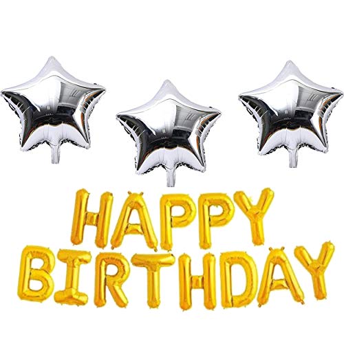 Happy Brthday Foil Letters Balloon Banner with 3 Silver Star Foil Balloon for Brthday Party