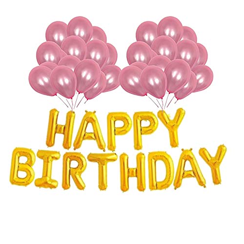 Happy Brthday Foil Letters Balloon Banner with 50 Pink Latex Balloon for Brthday Party