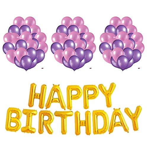 Masti Zone Happy Birthday Foil Letters Balloon Banner with 50 Purple Pink Latex Balloon for Birthday Party Decorations Items