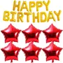 Masti Zone Happy Birthday Foil Letters Balloon Banner with 6 Red Star Shape Balloon for Birthday Party