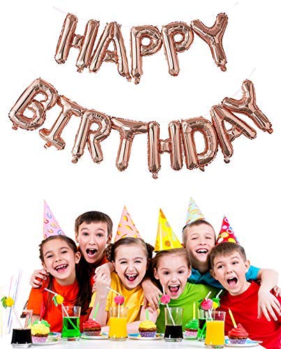Size:Rose Gold Letter BalloonAdd a little extra shine to your Brthday decorations with Rose Gold Letter Happy Brthday Balloons. These foil balloon banners inflate to read "HAPPY" and "BrthDAY". Tape these letter balloon banners to the wall or use them as unique photo props. There's no need for helium - just inflate these balloon banners with the included straw for an easy party decoration.