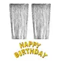Khurana Decorative Happy Birthday Letter Foil Balloon Set of (Gold) with 2pcs Silver Fringe Curtain (3 X 6 Feet) for Birthday Decoration Party