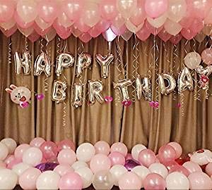 Happy Brthday Balloons to enhance the celebrations Balloons are synonymous with Brthdays just like cakes. From small KDs to grandparents everyone loves these colorful fun decorations. Gone are the days of standard shape boring balloons in dull colors. We present to you vibrant balloons in the shape of letters that spell HAPPY BrthDAY and regular ones in fun metallic shades. This combo contains set of 13 letters in foil in bright silver color and 60 pieces Metallic balloons in White and Pink colors. These balloons add a look of elegance and sophistication transforming the humble balloons from a childish party decoration to an elegant addition.