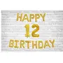 Edition:Number 12Happy Brthday alphabet letter foil balloon with number foil balloon. Best balloons for Brthday decoration. Best Brthday decoration item for boys and girls. Package contains gold color 16 inches happy Brthday alphabet balloons 16 inches number balloon ribbon to attach the alphabets and straw to blow the foil balloon use the plastic straw inflate the gass slowly until 90% filled and keep away from fire when the inflation is completed the balloon comes automatically sealing glue! Use the gold ribbon to hang happy Brthday letters on wall window ceiling or in courtyard it is very easy to decorate your Brthday party. After party please use plastic straw to export the air for reuse.