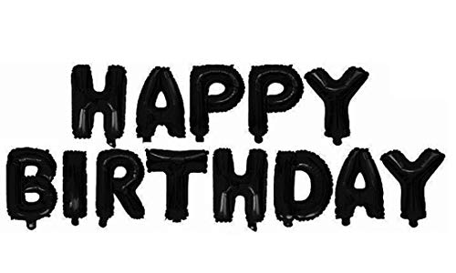 • Happy Brthday Alphabet letter toy foil balloon (Black) set of 13 letters (straw included) pack of 30 Pcs Black/Gold Metallic balloons + 2 Gold Star foil balloons + 2 Golden Curtains + 1 Happy Brthday printed Round Foil Balloon (Pack of 48)
