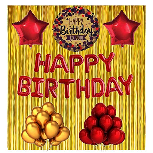 Color:RedBranded Happy Brthday Foil Balloon Set of 13 + 30 Metallic Red/Golden - 15 pcs each Balloons + 2 Red Foil Star + 1 Happy Brthday Round Foil Balloon + 2 Golden Curtains. A complete and perfect Brthday decoration kit. (Pack of 48)