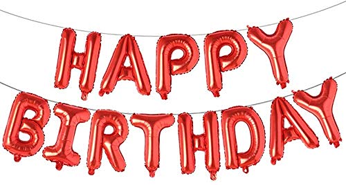 • Happy Brthday Alphabet letter toy foil balloon (Red) set of 13 letters (straw included) pack of 30 Pcs Red/Gold Metallic balloons + 2 Red Star foil balloons + 2 Golden Curtains + 1 Happy Brthday printed Round Foil Balloon (Pack of 48)