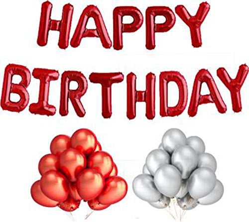 ¢ Happy Brthday Letters Foil Balloon Set Decoration Combo with 30 Metallic Balloon (Red)