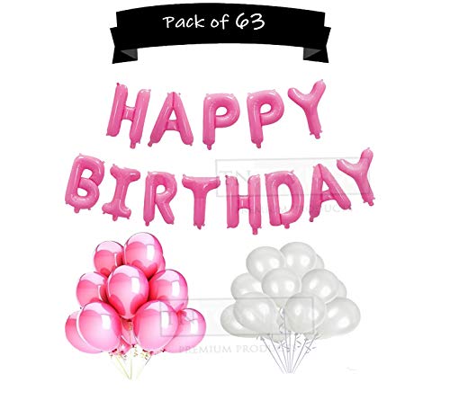 ¢ Happy Brthday Letters Foil Balloon Set Decoration Combo with 50 Metallic Balloon Room Decoration for Brthday - Pink