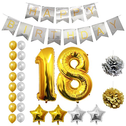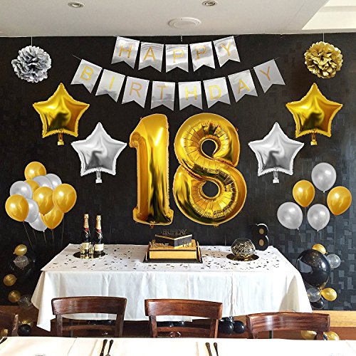 Happy Brthday Party Balloons Supplies & Decorations Set - 18th Year Brthday