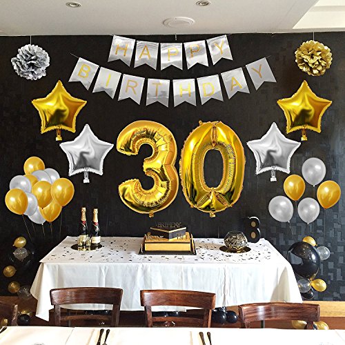 Happy Brthday Party Balloons Supplies & Decorations Set - 30th Year Brthday