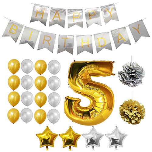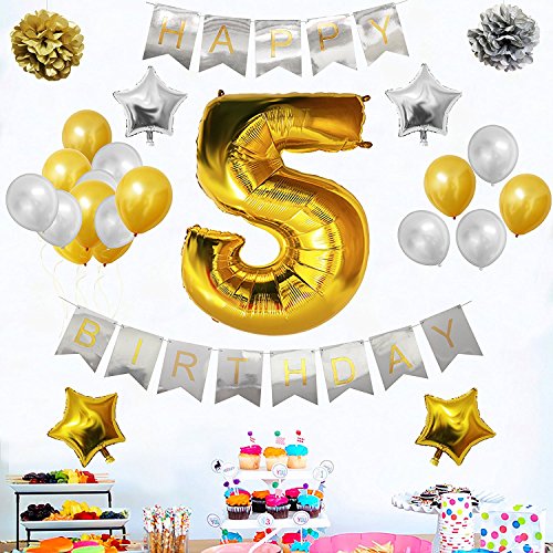 Happy Brthday Party Balloons Supplies & Decorations Set - 5th Year Brthday