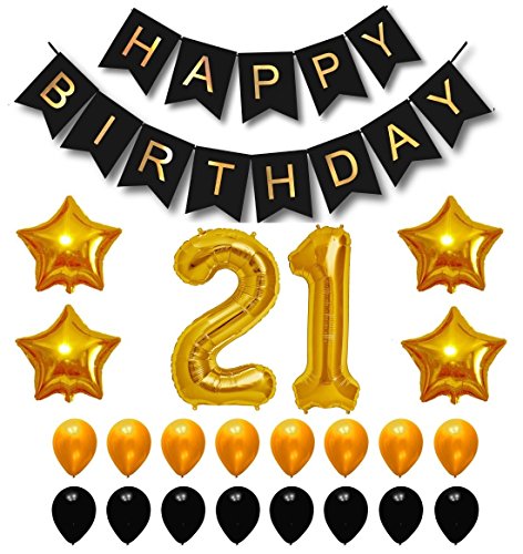 Happy Brthday Party Balloons Supplies & Decorations Set Black & Gold (21st Year)
