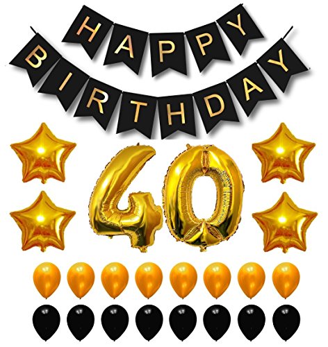 Color:40th YearThis pack include gold color foil balloon number - 16 inch 50 gold and black latex balloon 1 black happy Brthday banner very paper four gold star foil balloons.
