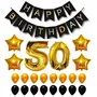 Happy Brthday Party Balloons Supplies & Decorations Set(Gold Number Foil Balloon+50 Gold & Black Latex Balloon+1 Black Happy Brthday Banner+ Four Gold Star Foil Balloons)- 50th Year
