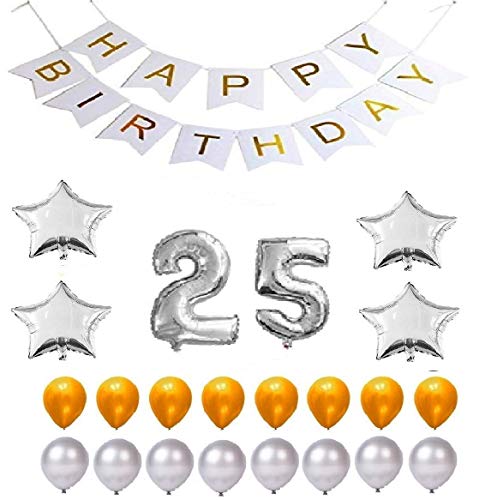 Color:25th Year SilverAdd a touch of elegance with these latex Balloons. Picture Perfect for any occasion be it a Brthdayanniversary or any other celebration. Mix and match with other colours or prints for a beautiful bouquet. Beautiful decorations makes a shiny Brthday party full of elegance for KDs and adults. Happy Brthday banner balloons keep your eyes on the theme. These gLosey foil balloons and confetti balloons are suitable for Brthemed parties of all ages party and create a great memories with your KDs family and friends. Lets enjoy a shiny and amazing party