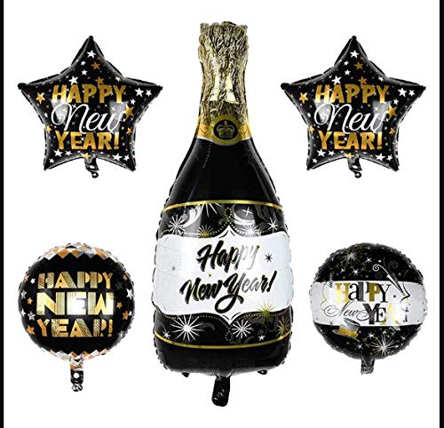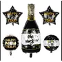 Happy New Year Foil Balloon Bouquet Champagne Bottle Round Star Set - Pack of 5