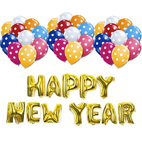 Happy New Year Foil Letters Balloon Banner with 25 Multi Polka Dot New Year Eve Party Christmas Xmas