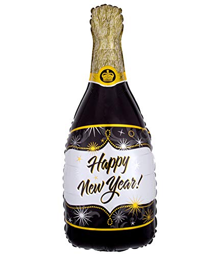 Evisha Hapy New Year Champagne Bottle Foil Aluminium Balloons