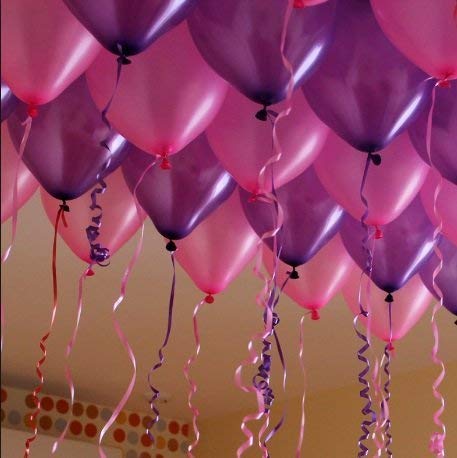 Size:Pack of 150Evisha HD metallic/Latex Purple And Pink balloons theme party party decorationSuitable for all parties Brthday party pack of 150 balloons.