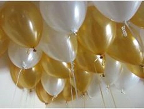 Evisha Evisha HD Big Size metallic/Latex Golden and White balloons, theme party, party decoration, birthday party pack of 100