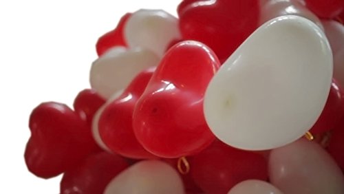 Evisha Heart RED & White Balloons| Love Theme Party Balloons | Valentines Decoration Balloons Heart Shape Balloons (Pack of 50)