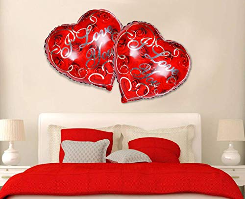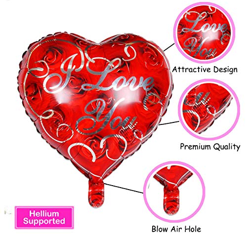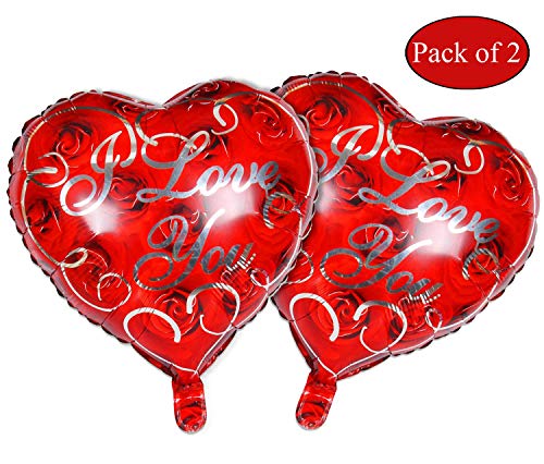 AMFIN (Pack of 2) Heart Shape Red Balloons I Love You Red Foil Balloon for Valentine Decoration Material, Wedding, Engagement - Red