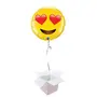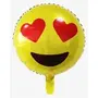 • The package will consists of one pc hert Smiley expressions emoji foil balloon.18" in size. These emoji/ smiley balloons can be filled with air or helium. It can float up in the air with helium.