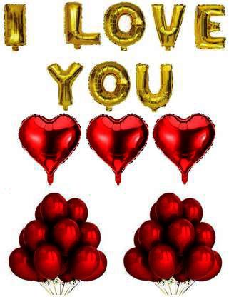 Branded I Love You Letter Foil Balloon Gold Set of 8 with 30 Metallic Red - 30 pcs each Balloons and 3 Red Foil hert balloons. A perfect Love Theme decoration kit.