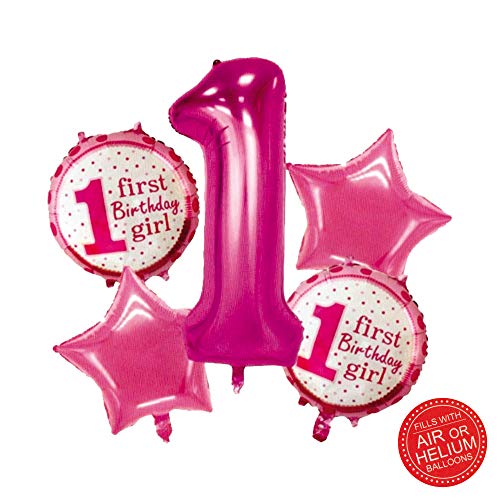 Color:My 1st Brthday Girl | Size:Pink themeis a popular brand for foil balloons. This set comes with 5 type balloons. It add a glow in your Small's Brthday decoration. Bring an attention of your guest toward it.How it comesOne Number foil balloon 28 inchesTwo are in round shape written as 1st Brthday boyAnother two are in star shaped written as Small boyInflate whether with your mouth or use helium.Hang it with thread or paste it by tape on wallsYour decoration is completed now.