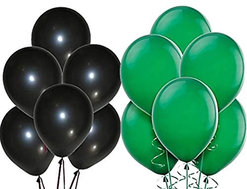 Size:Pack of 10 | Color:Black - GreenDress your party space in vibrant color with metallic Balloons. Classic party decorations these premium quality latex balloons are a fabulous addition to a bachelorette party sweet 16 bridal shower Christmas Valentine's day opening ceremony house warming engagement & ring ceremony and anniversary dj party. Whether placed individually through out a room grouped with foil balloons for a charming balloon bouquet or combined with paper decorations for a festive balloon chandelier these party balloons are a fun and easy way to add decorative flair to the occasion. KDs seems to love these balloons.