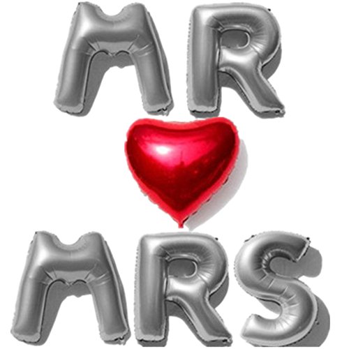 Masti Zone MR & MRS 5 Letter Silver Colour + 1 RED Heart FOIL Balloons Valentine Party Decoration