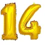 A 16-inch Gold number balloon lets everyone know which big milestone event you're celebrating! You can combine this Gold number balloon with other numbers for a custom look at a graduation Brthday new Year's even party or anniversary. The metallic finish of this Gold number balloon makes it an eye-catching addition to the photo booth background at your event.