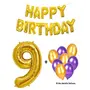 Number 9 Gold Foil Balloon and 50 Nos Purple and Gold Color Latex Balloon and Happy Brthday Gold Foil Balloon Combo