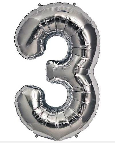Masti Zone Number Balloons Numaric Age Birthday Count Silver Foil Letter Balloons for Happy Birth Day Party 18Inches - (Pack of 1) (Number - 3)