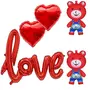 Pack of 1 Red Love Shape Foil Balloons with 2 pcs hert Shape and Teddy Foil Balloons for Brthday Wed