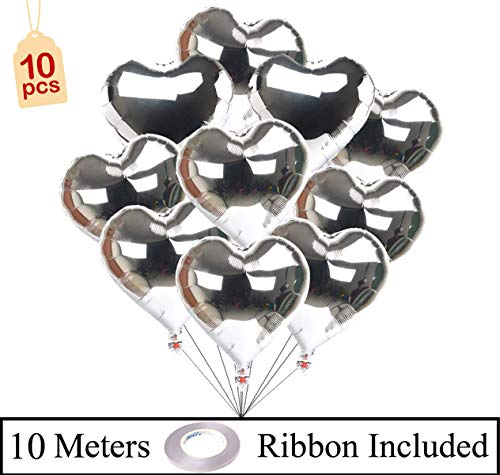 Color:SilverAn especially magnificent balloons set sweet romantic & Brthday decoration for your engagement party wedding ceremony anniversary celebration etc available for recycling usage can float when filled with hydrogen or helium material: Aluminium foil package includes: 1 set of 10 foil balloons with 1 pc. Matching ribbon.