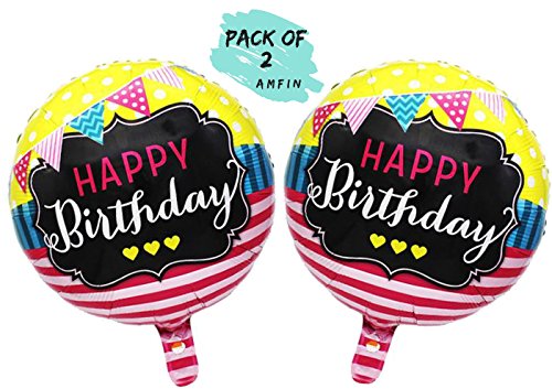 AMFIN (Pack Of 2) 17 Inch Happy Birthday Round Foil Balloons/happy birthday Balloons For Decoration/Birthday Party Supplies