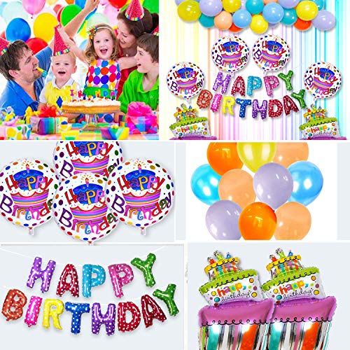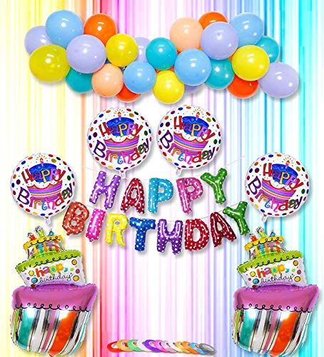 AMFIN (Pack of 37) Happy Birthday Letter Foil Balloons Set Decoration Combo, Birthday Rainbow Balloons for Decoration - Multi