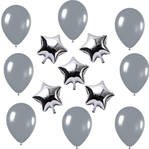 Pack of 5 Silver Star Shape foil Balloon with 50 Silver Balloon Theme Party Decoration & New Year , Christmas , Valentine's Day Celebration
