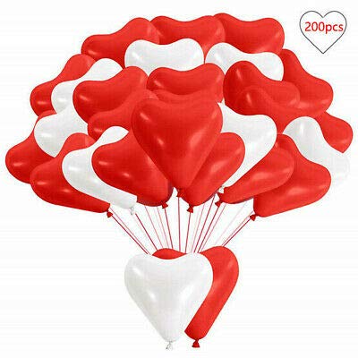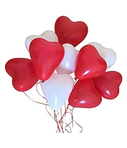• Pack of 50 red White hert shape balloons for Brthday Christmas New year Valentines day Wedding Anniversary Small Shower Theme Parties